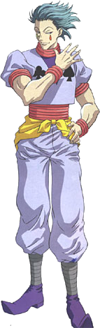 Motivos por los que esta en esta posicion. Fue capaz de vencer a Knuckle, Shoot y Melereon simultaneamente.14. Hisoka Molow, payaso, exladron de la tropa fantasma y cazador. Es pedofilo y es un asesino hedonista obsesionado con enfrentarse a enemigos fuertes.